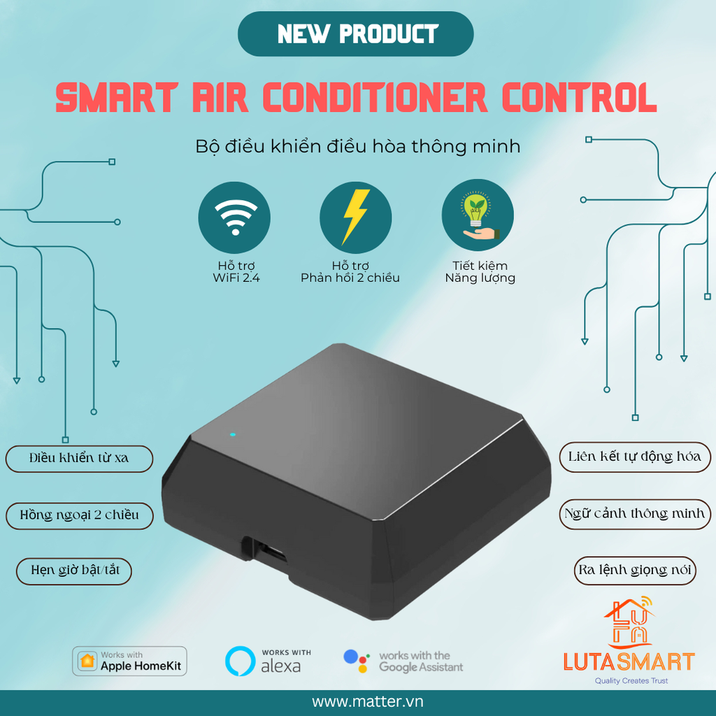 Bộ điều khiển hồng ngoại đa năng thuộc giải pháp điều khiển thông minh Matter. Thiết bị sử dụng sóng hồng ngoại để điều khiển điều hòa từ xa thay thế cho các loại remote truyền thống.