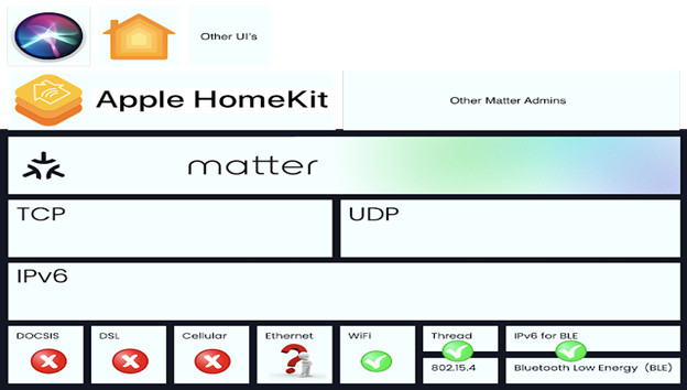 Cơ bản Thread sử dụng IPv6, nó giảm độ phức tạp cho các nhà phát triển. Zigbee tốt cho thiết bị tiêu thụ ít năng lượng và băng thông thấp,nhưng cũng phụ thuộc vào băng cao. Có nghĩa nhà phát triển phải có cả hai loại thiết, một là TCP/IP và một là Zigbee. Với Matter sử dụng Thread, nhà phát triển chỉ cần phát triển cho Matter và Matter sẽ giao tiếp qua TCP/IP qua WiFi và Thread và sau này là các lớp vật lý khác.